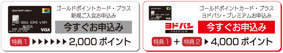 お申込み期間中にヨドバシカメラ店頭またはWEBでゴールドポイントカード・プラスをお申込みいただき、ご利用期間中に発行されたカードをヨドバシカメラで1回以上ご利用(クレジット決済)いただくと、2,000ポイントプレゼントいたします。さらに、加入お申込み期間中にヨドバシ・プレミアムのご加入で2,000ポイント(合計4,000ポイント)プレゼントいたします。