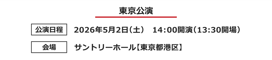 - ※本チケットの販売は「キョードー東京」で予約・販売を承ります。上記ボタンより専用販売ページにアクセスいただくとチケットをご購入いただけます。