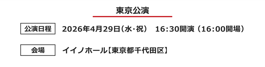 お問い合わせ:キョードー東京 0570-550-799 オペレータ受付時間(平日11:00~18:00/土日祝10:00~18:00)