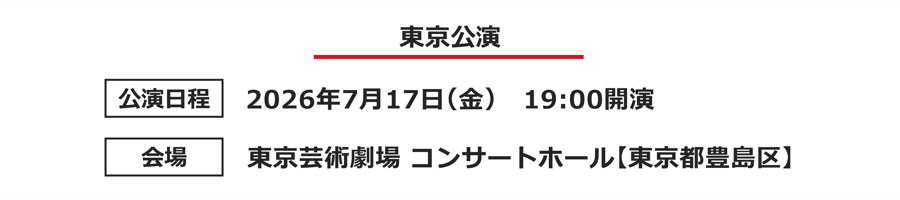 - ※本チケットの販売は「キョードー東京」で予約・販売を承ります。上記ボタンより専用販売ページにアクセスいただくとチケットをご購入いただけます。