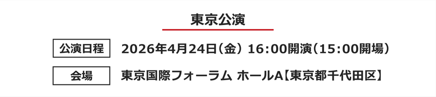 - ※本チケットの販売は「キョードー東京」で予約・販売を承ります。上記ボタンより専用販売ページにアクセスいただくとチケットをご購入いただけます。