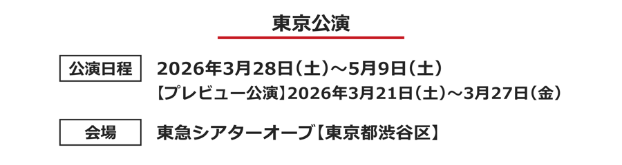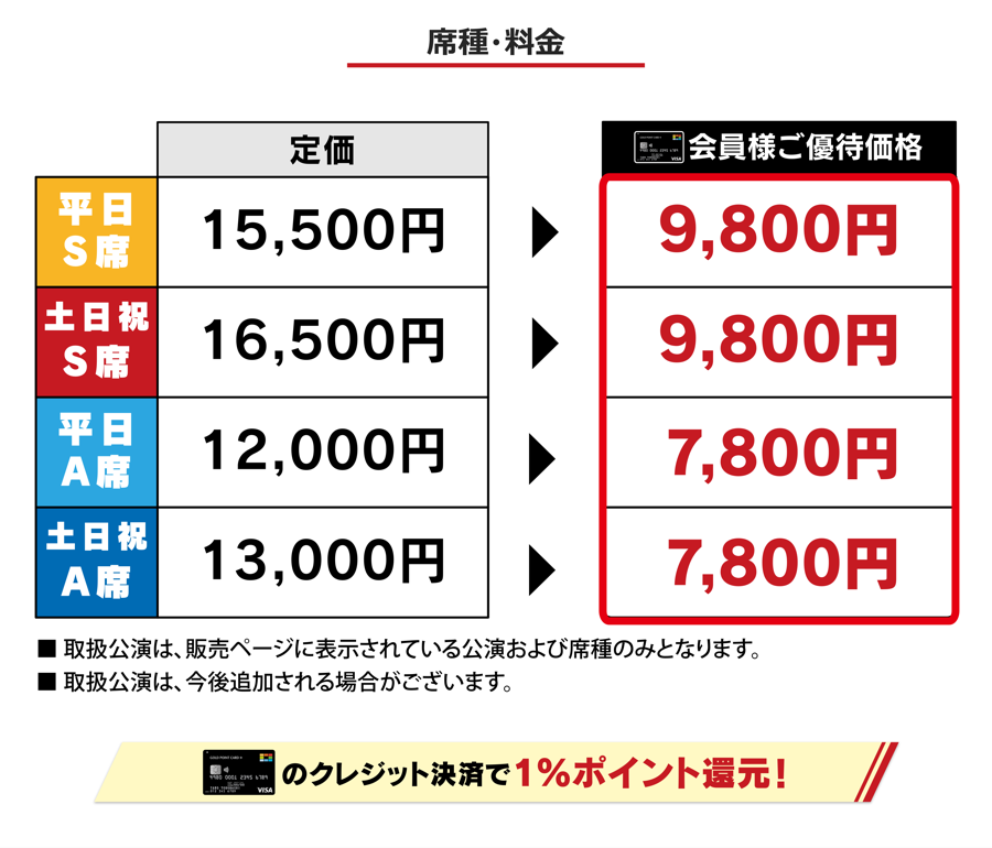 - ※本チケットの販売は表示されている公演日・席種のみの受付となります。