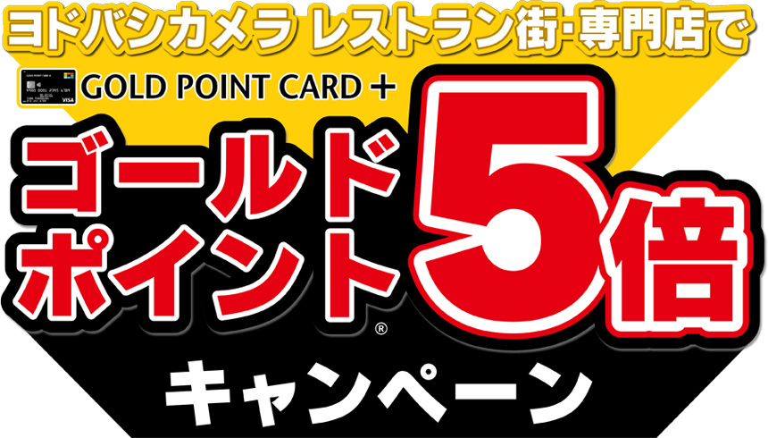 ヨドバシカメラのレストラン街・専門店でゴールドポイントカード・プラスのクレジット決済をご利用いただくと、通常1%のところ5%(通常1%+キャンペーン分4%)ゴールドポイントⓇ還元いたします。