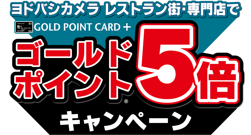 ヨドバシカメラのレストラン街・専門店でゴールドポイントカード・プラスのクレジット決済をご利用いただくと、通常1%のところ5%(通常1%+キャンペーン分4%)ゴールドポイントⓇを還元いたします。