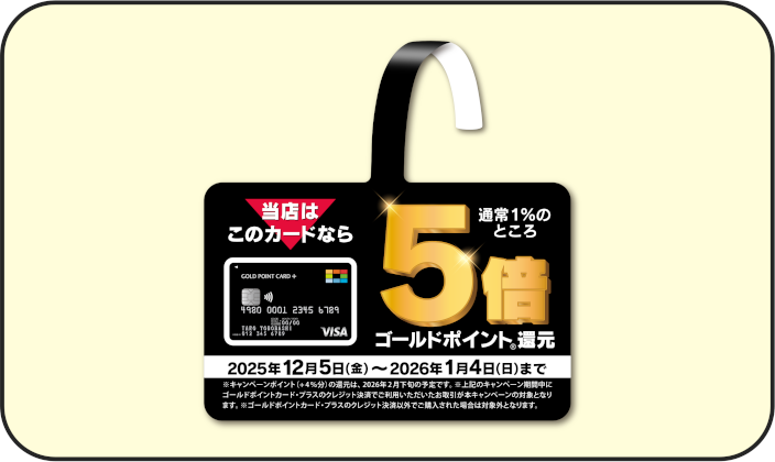 - ご利用日が「2025年12月5日~2026年1月4日」、かつ「2026年1月」「2026年2月」いずれかのご利用明細に記載があるものが集計対象となるお取引です。